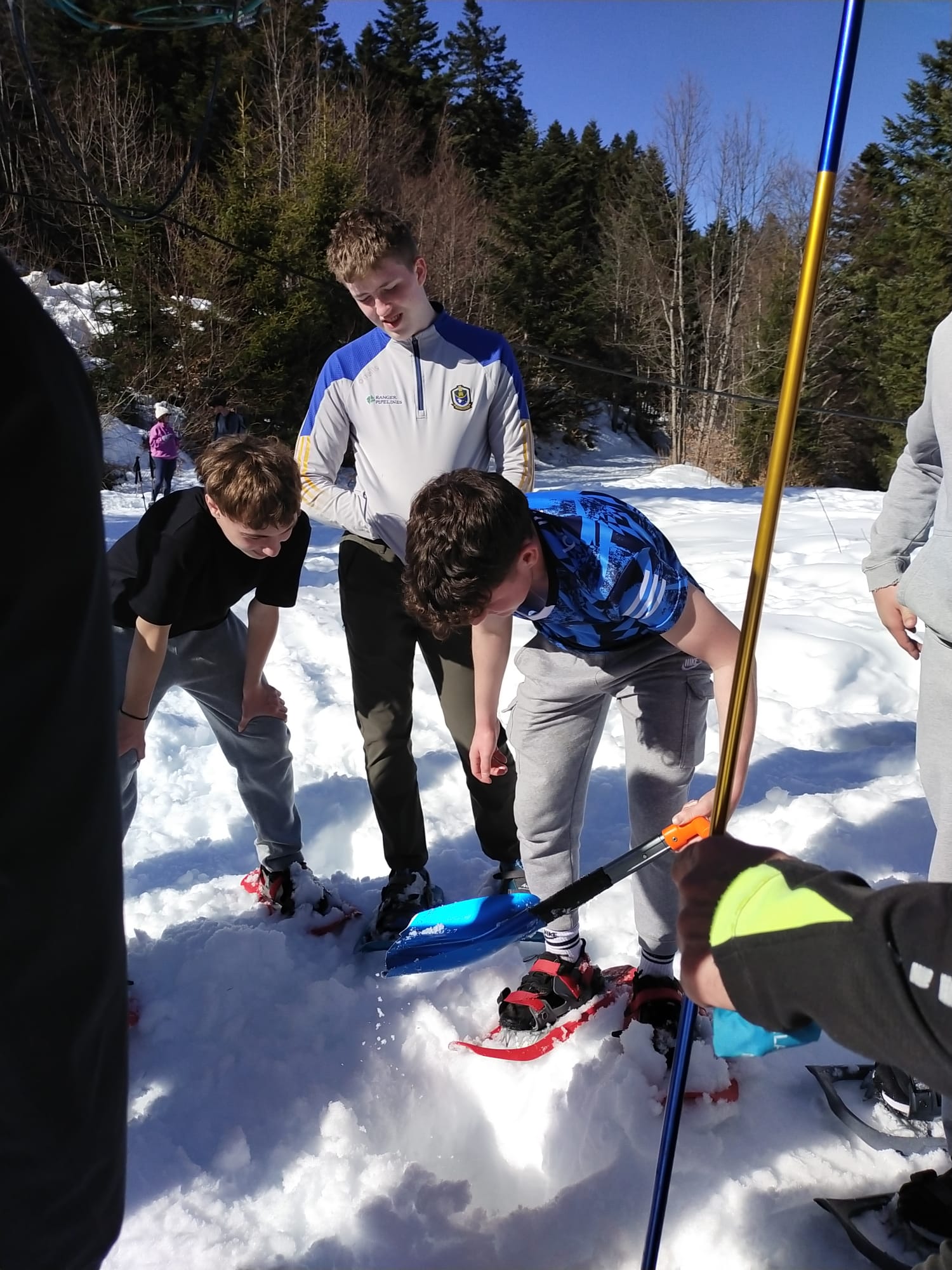 Au lendemain des Jeux Olympiques d’hiver, on ne pouvait pas accueillir nos correspondants sans leur faire découvrir le biathlon ... version laser pour nous. Raquettes aux pieds, nous avons également été initiés aux dangers de la montagne et aux techniques de survie : utiliser un DVA (détecteur de victime d’avalanche), sauver et transporter une victime, fabriquer un abri de fortune et (presque !) allumer un feu à l’aide d’une loupe.